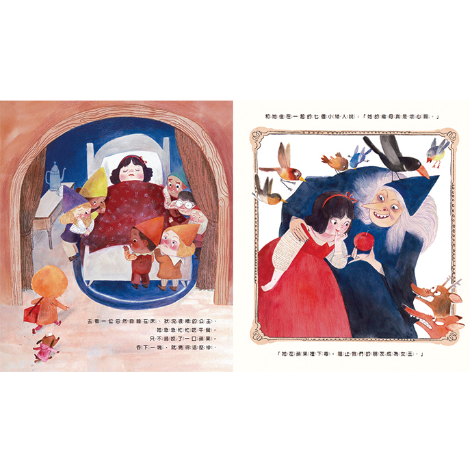 ☆圖像裡藏著魔法細節與祕密彩蛋☆ 黃江的插畫充滿故事感與節奏感,每一頁都是一場小型舞臺劇,森林的雨、壁爐的火光、角色微妙的表情,都在說故事。他在畫面裡藏了許多沒有出現在文字裡的細節,像是潛藏在背景的其他童話角色與線索,邀請讀者睜大眼睛去尋找,讓閱讀變成一場探索遊戲,也讓想像在頁面間延伸。